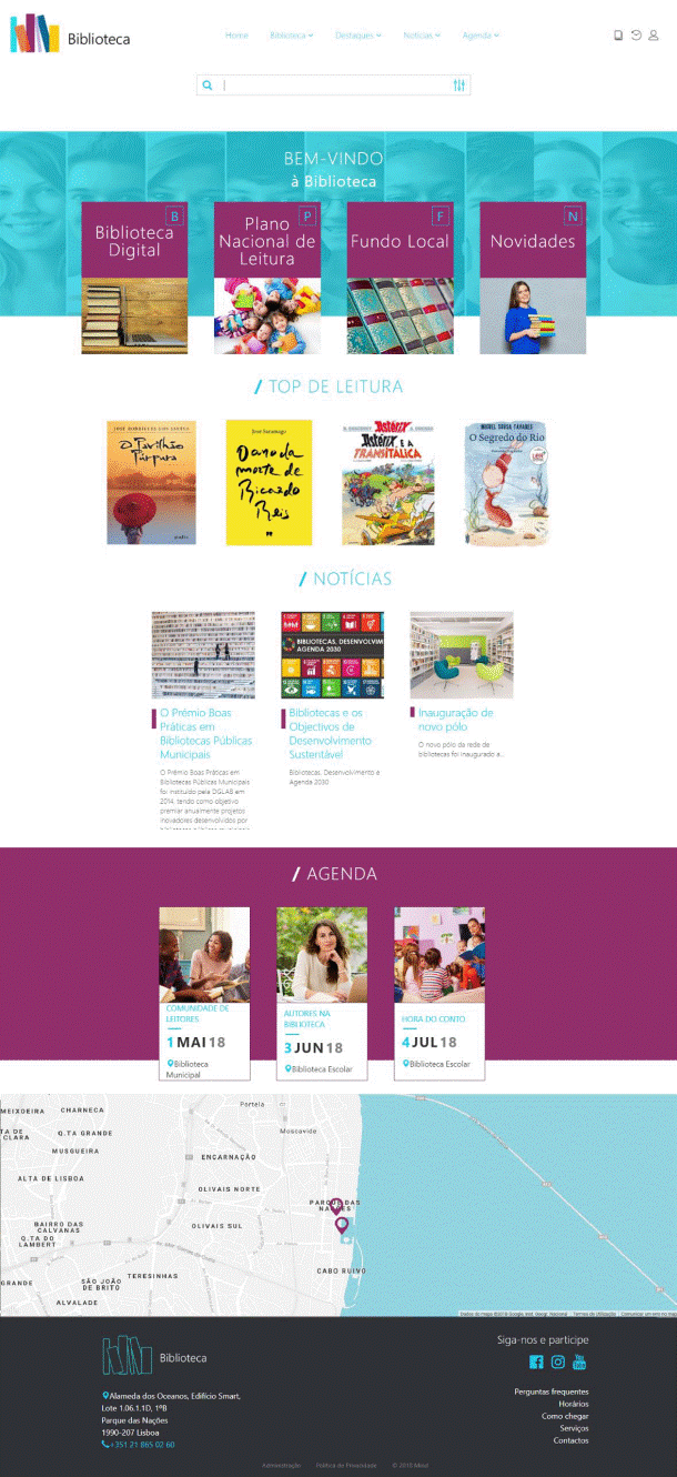 Na página inicial, a biblioteca