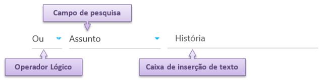 possui três controlos: o operador lógico, o campo de pesquisa e a caixa de