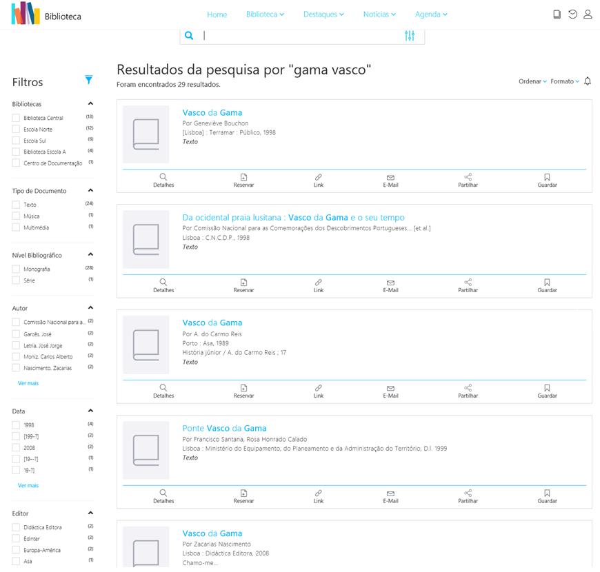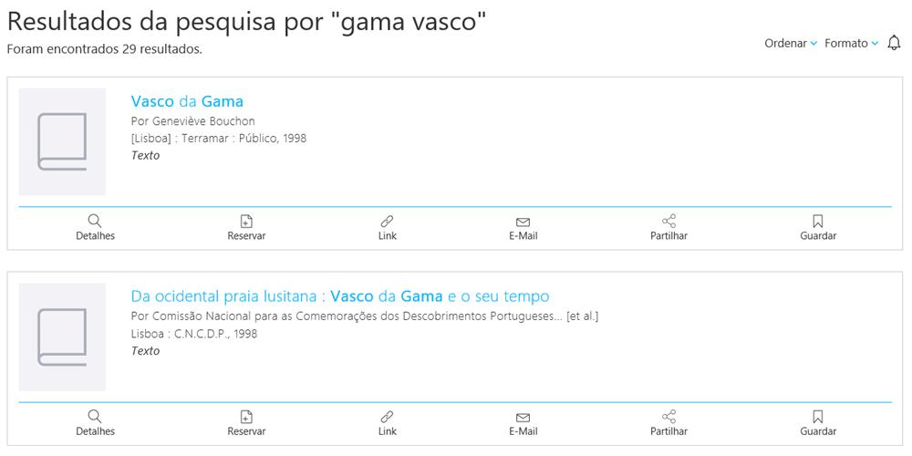 Exemplo de uma pesquisa: pesquisar pelos termos "Vasco da