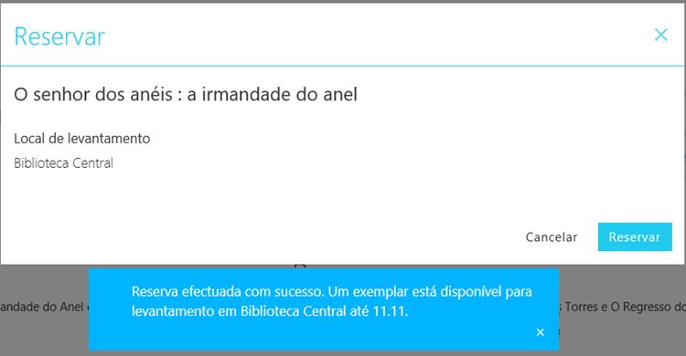 autenticado e consoante a disponibilidade dos exemplares, a reserva pode ser efectuada de imediato, aparecendo a informação de Reservado, ou surge uma janela de