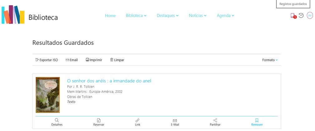 clicado no menu Registos Guardados, estão presentes todas as obras que